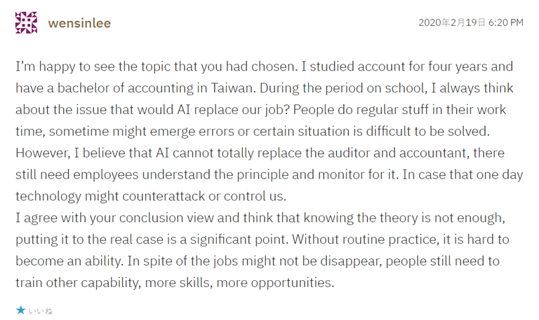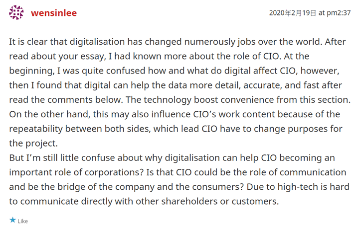 In respect of giving comments to other writers, accept different opinions and rational communication. Be more focused on learning new knowledge, writing skills, and typography skills from colleagues. The below images are the comments of my feeling after reading the articles. Figure 1 and 2 are for post 1. Then, figures 3 and 4 are for post 2.
